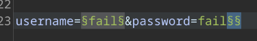 The next step is to send the POST login request from over to Intruder and surround our username and password fields with the section signs: