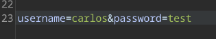 Next, send the Login POST request (#27 in the screenshot) over to repeater and we’re going to try logging in a few times with invalid credentials. Change out the last line of the request body to carlos and any random password:
